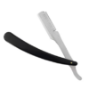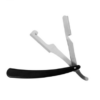 Navalhete com cabo plástico para cabeleireiro em plástico de alta resistência química e alto impacto, com a face que prende a lâmina de barbear em inox liso.