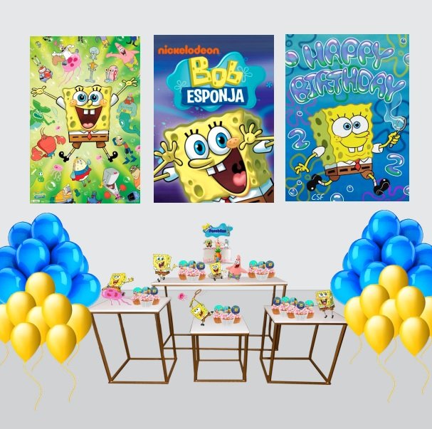 Kit Decoração de Festa Médio Bob Esponja Simples Pôster A3