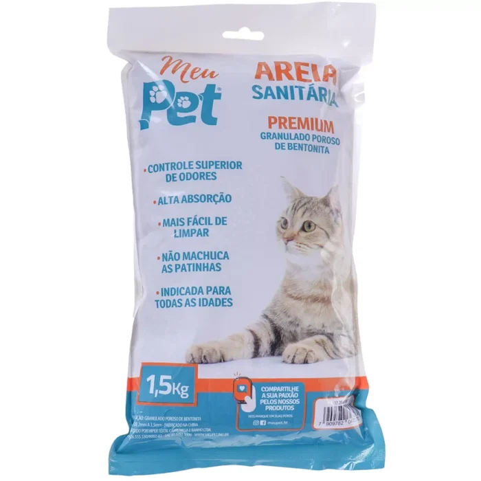 A Areia Sanitária Premium é perfeita para a Higiene do seu Pet, ela possui Controle Superior de Oderes, Alta Absorção, Mais fácil para limpar, Não machuca as patinhas do seu Pet e é indicada para todas as idades.