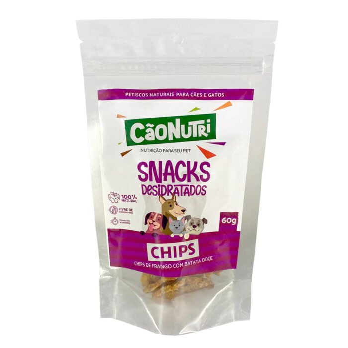 Chips Frango com Batata Doce Petisco Natural para Cães e Gatos CãoNutri